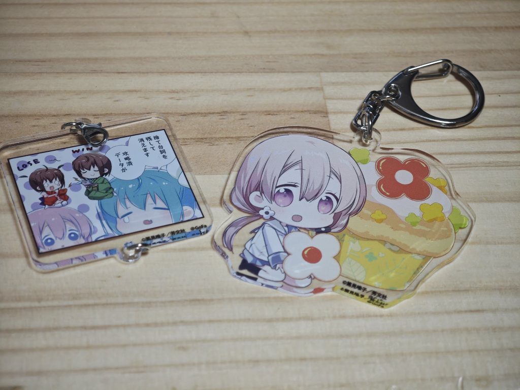 そういうわけで何が出るかわからないガチャ方式のグッズで謎のコマのキーホルダーと100000000のカップケーキのキーホルダーを当てた。これ実質スロウスタートのエンディングの最後のガチャだろ・・・。