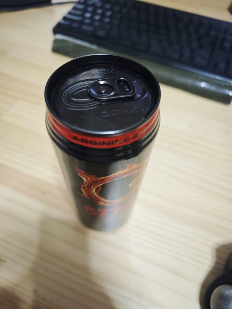 ブルダック炒め麺を食べた後だから全然辛くない!言われてみればピリ辛かな?って感じ。エナドリっぽい味に、ピリ辛と生姜っぽいスパイスが入ってる。まずくはないけどエナドリ飲みたいときに辛さはいらない気もする。