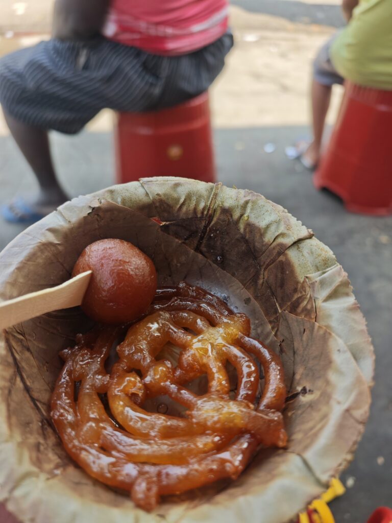 インドだとこんな感じでジャレビやグラブジャムンをそこらじゅうで売ってるんですよね。ハエがメッチャたかっていてイカついですが気にしてはいけません。
