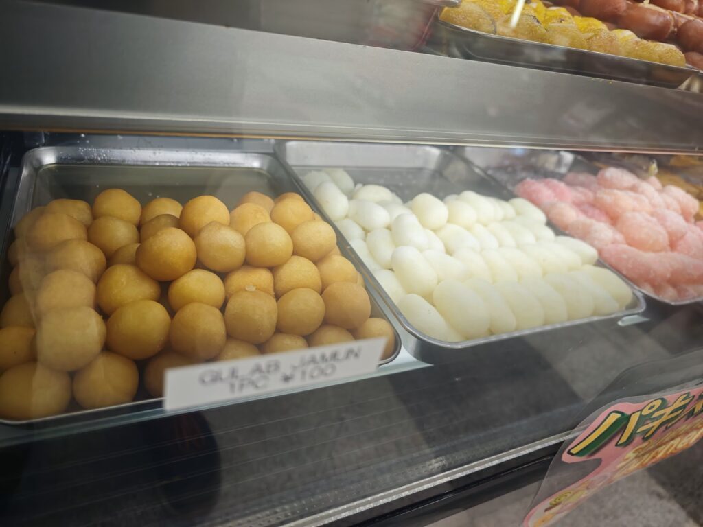ここガチですごいですよ!インドっぽいお菓子がめちゃくちゃ売られてます。世界一甘いお菓子と言われている「グラブジャムン」とか、謎のケーキとかいろいろあります。