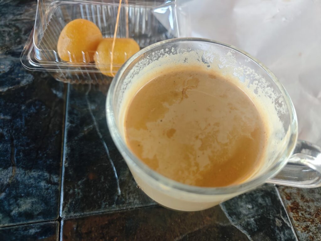 世界一甘いお菓子とか言われることのある「グラブジャムン」も食べてみました。ドーナッツのシロップ漬け~スパイス風味~みたいなお菓子ですね。甘かったです。頼んだチャイも甘いので逃げ場がありません。