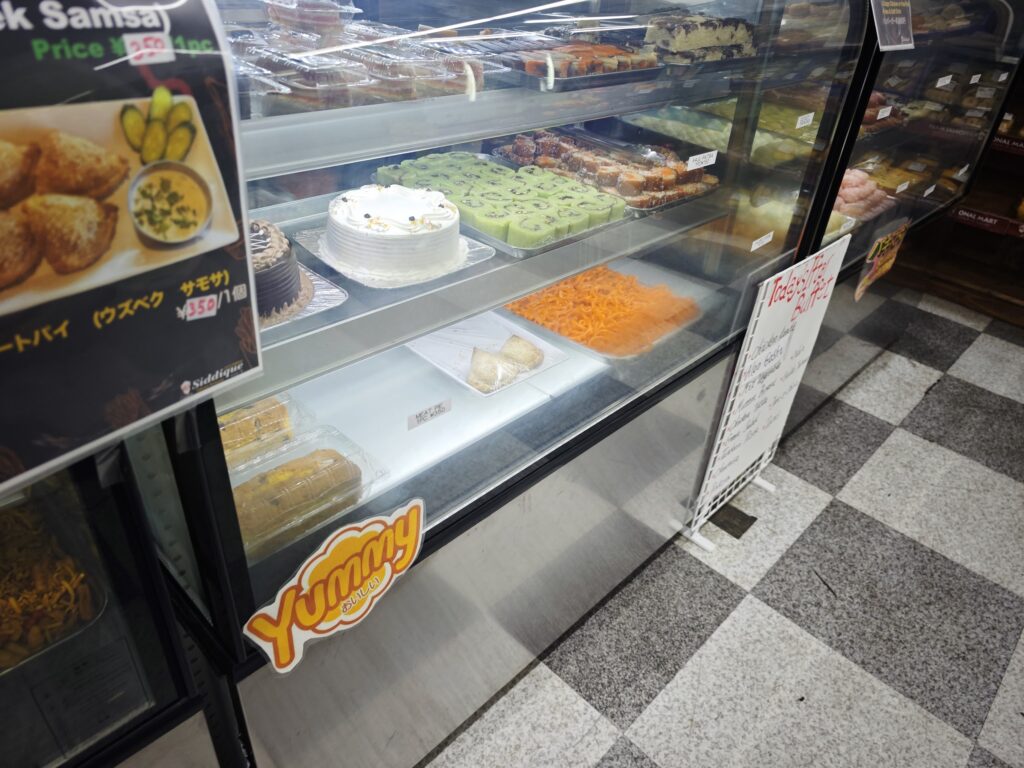 併設されてるスーパーの部分を家宅捜索します。このお店は、インドとかその周辺国で食べられている甘ったるいデザートがいろいろ売ってるのがうれしいんですよね~。こんな店はなかなかありません。